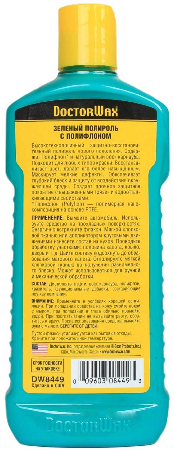 5.4/10 балловDoctor Wax DoctorWax полироль для кузова с полифлоном DW8449 зеленый, 0.3 л