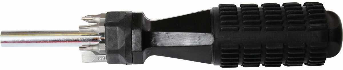 | Дополнительная информация : | Из хром-ванадиевой стали, магнитный фиксатор бит, пластиковая прорезиненная ручка имеет контейнер для хранения бит. |