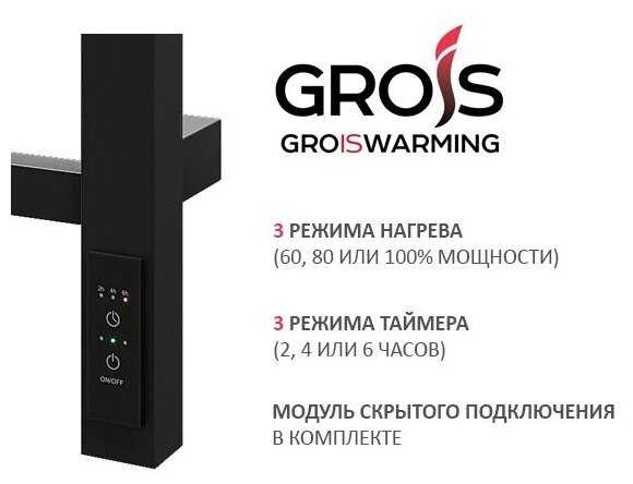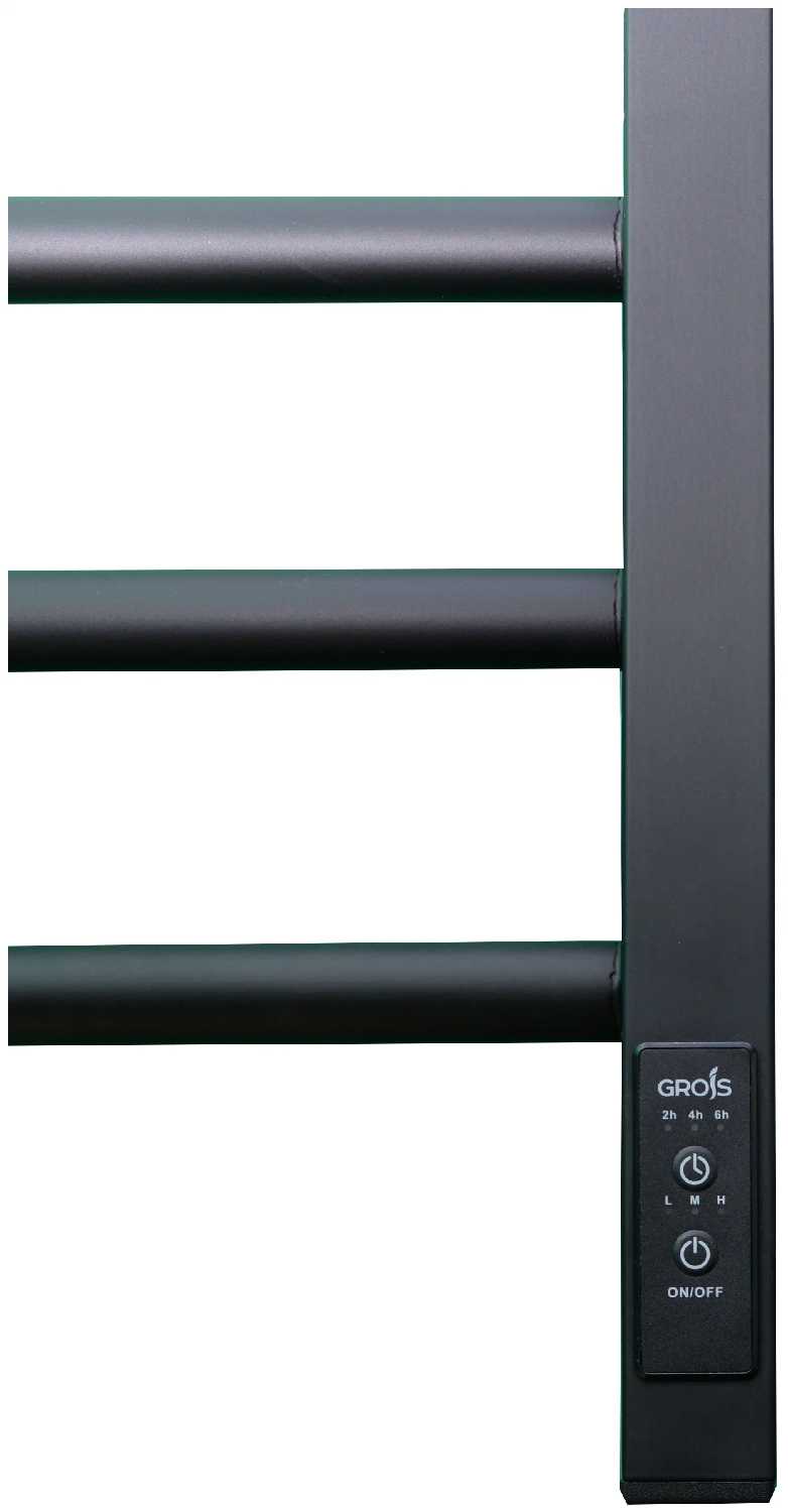Grois Полотенцесушитель электрический 530мм 800мм черный матовый с терморегулятором, таймером, правое подключение.