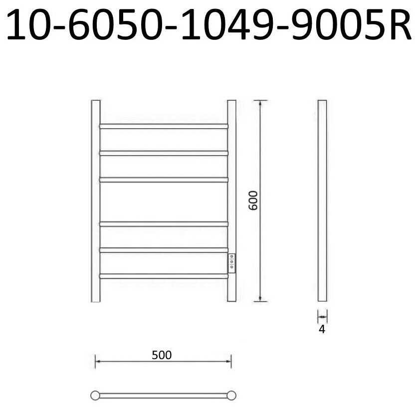 Маргроид Полотенцесушитель электрический ВИД 10 60х50 правый, скр. монтаж, черный матовый(RAL 9005), (Ferrum), Маргроид