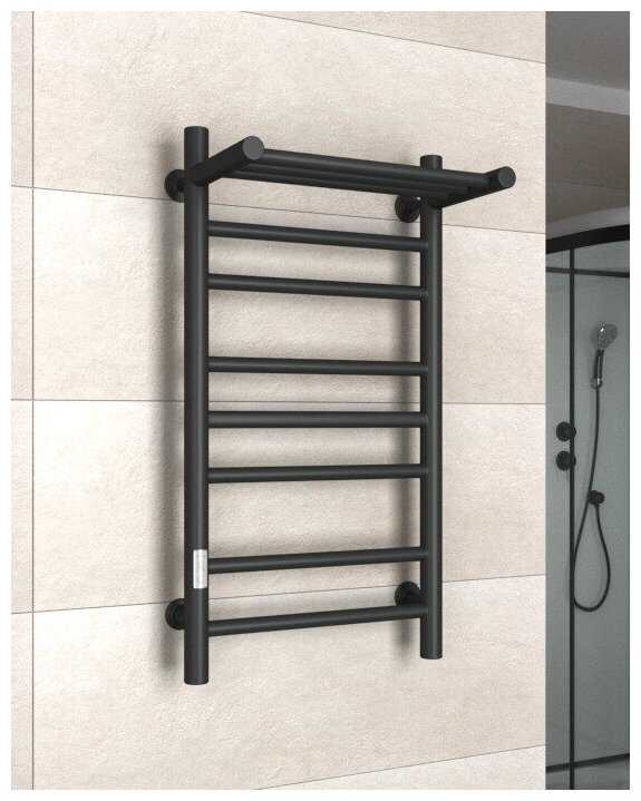 Маргроид Полотенцесушитель электрический ВИД 10 с полкой 80х50 правый, скр. монтаж, черный матовый(RAL 9005), (Ferrum), Маргроид