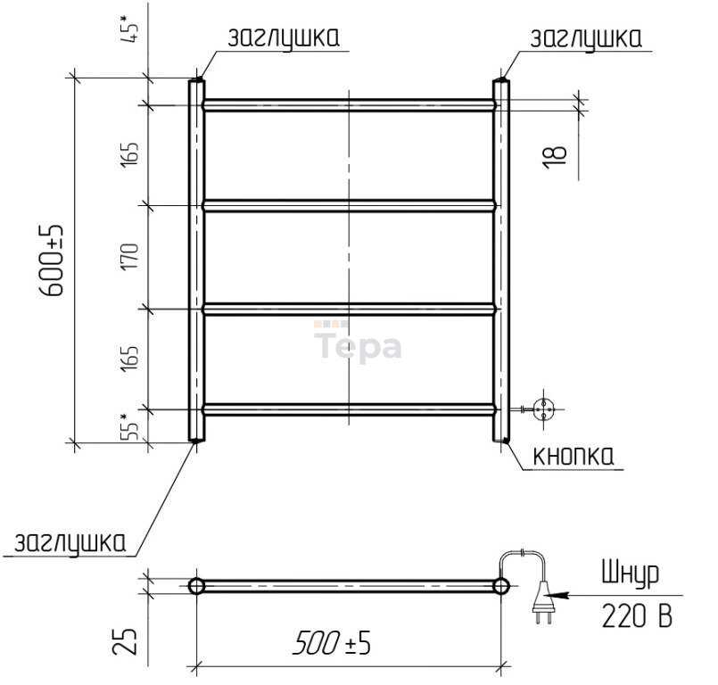 Tera Полотенцесушитель Электрический Классика, 500х600 мм