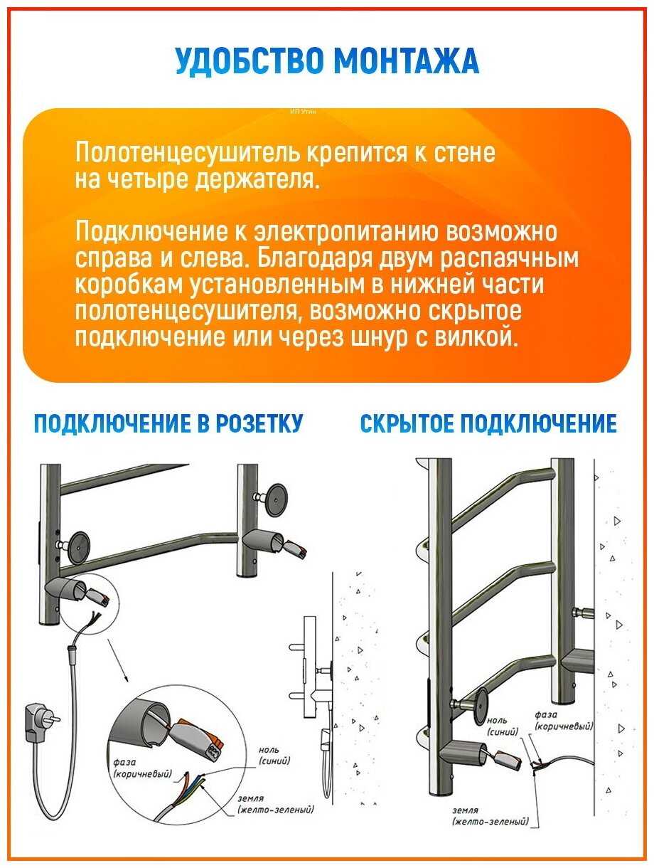 Характеристики:- электрический полотенцесушитель-лесенка