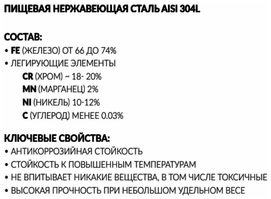 - материал: нержавеющая сталь