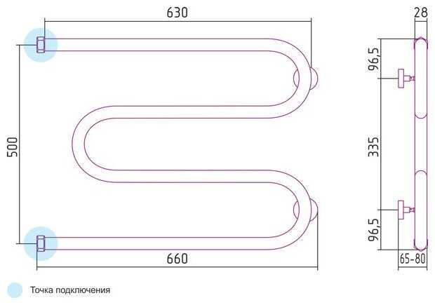 - подключение к системе горячего водоснабжения секций: 10 теплоотдача 535 Вт рабочее давление 3 - 15 атм кран Маевского