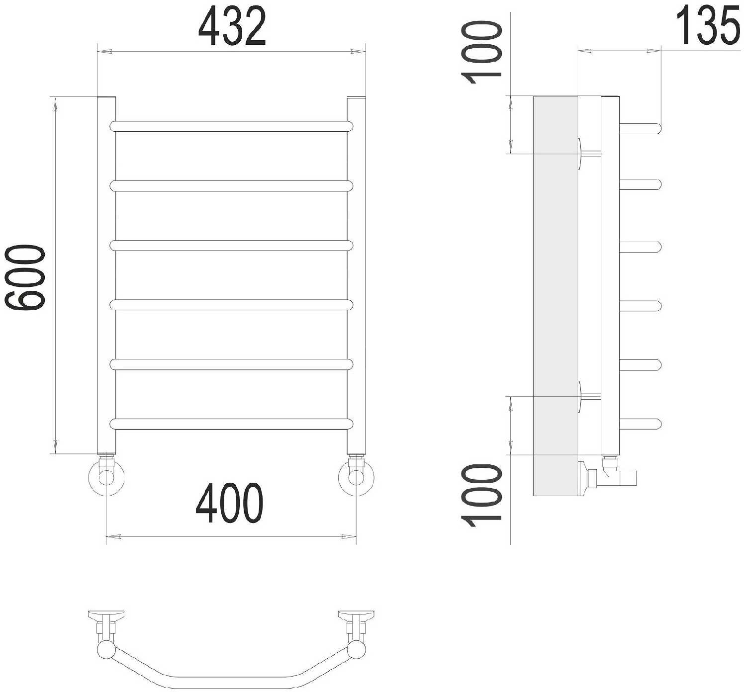 TERMINUS водяной из нержавеющей стали 6 перекладин нижнее подключение, м/о 40 см, 40 см х 60 см Виктория, Россия