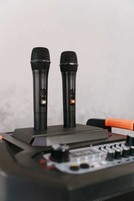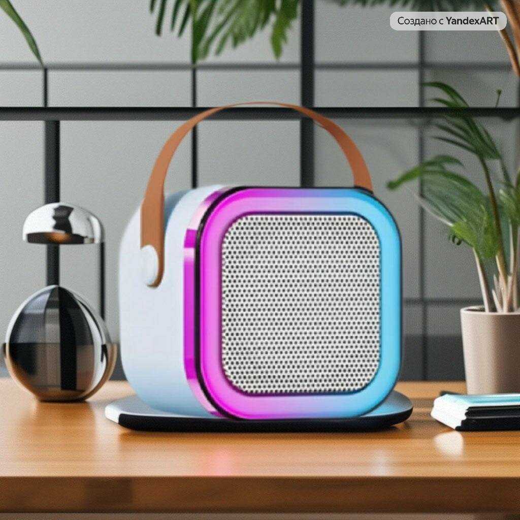 Simo Портативная колонка караоке с 2-мя микрофонами и подсветкой