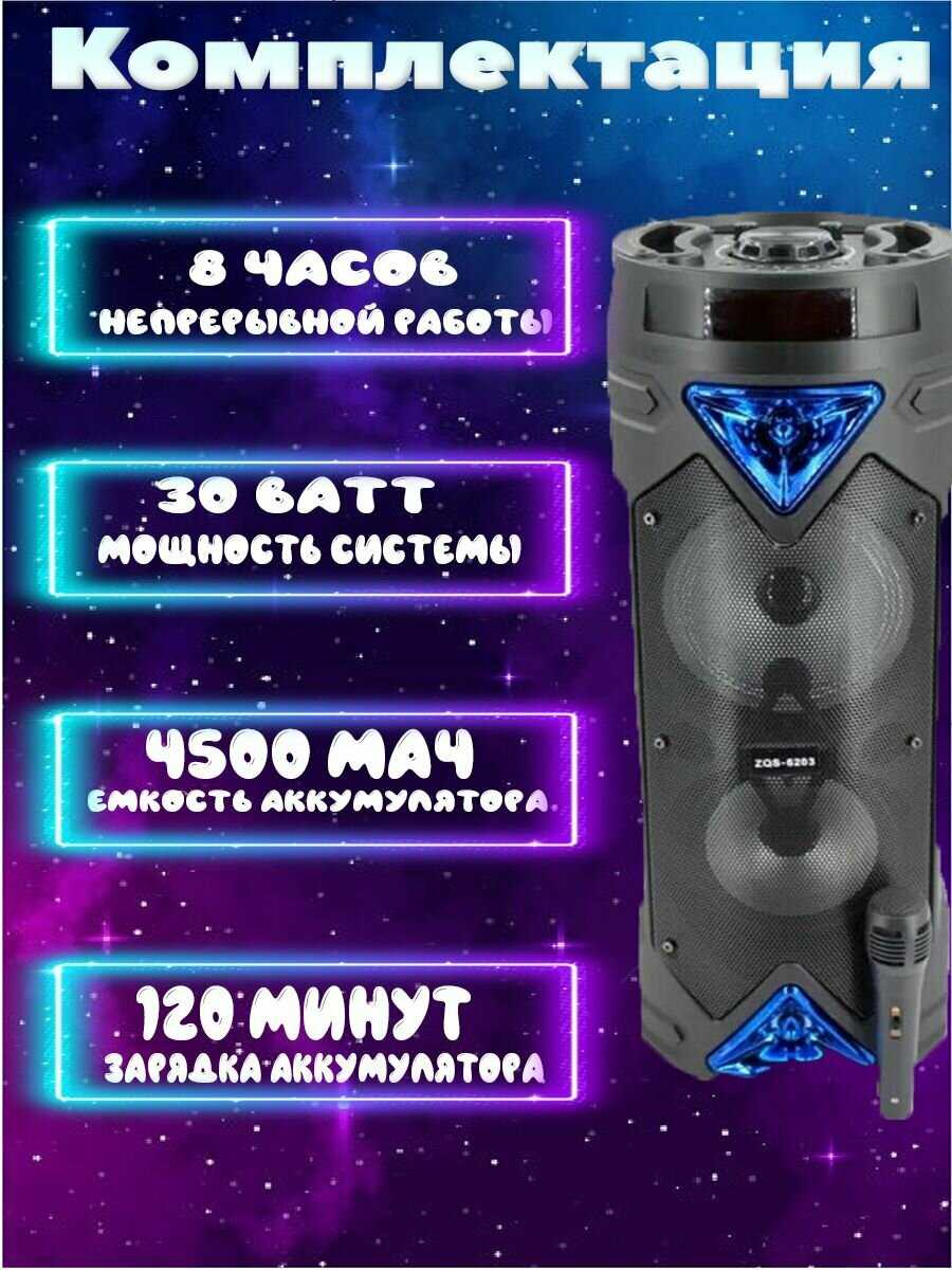 BT SPEAKER Портативная колонка (ZQS-4243) Bluetooth/USB/MicroSD/FM/дисплей/подсветка (черная)
