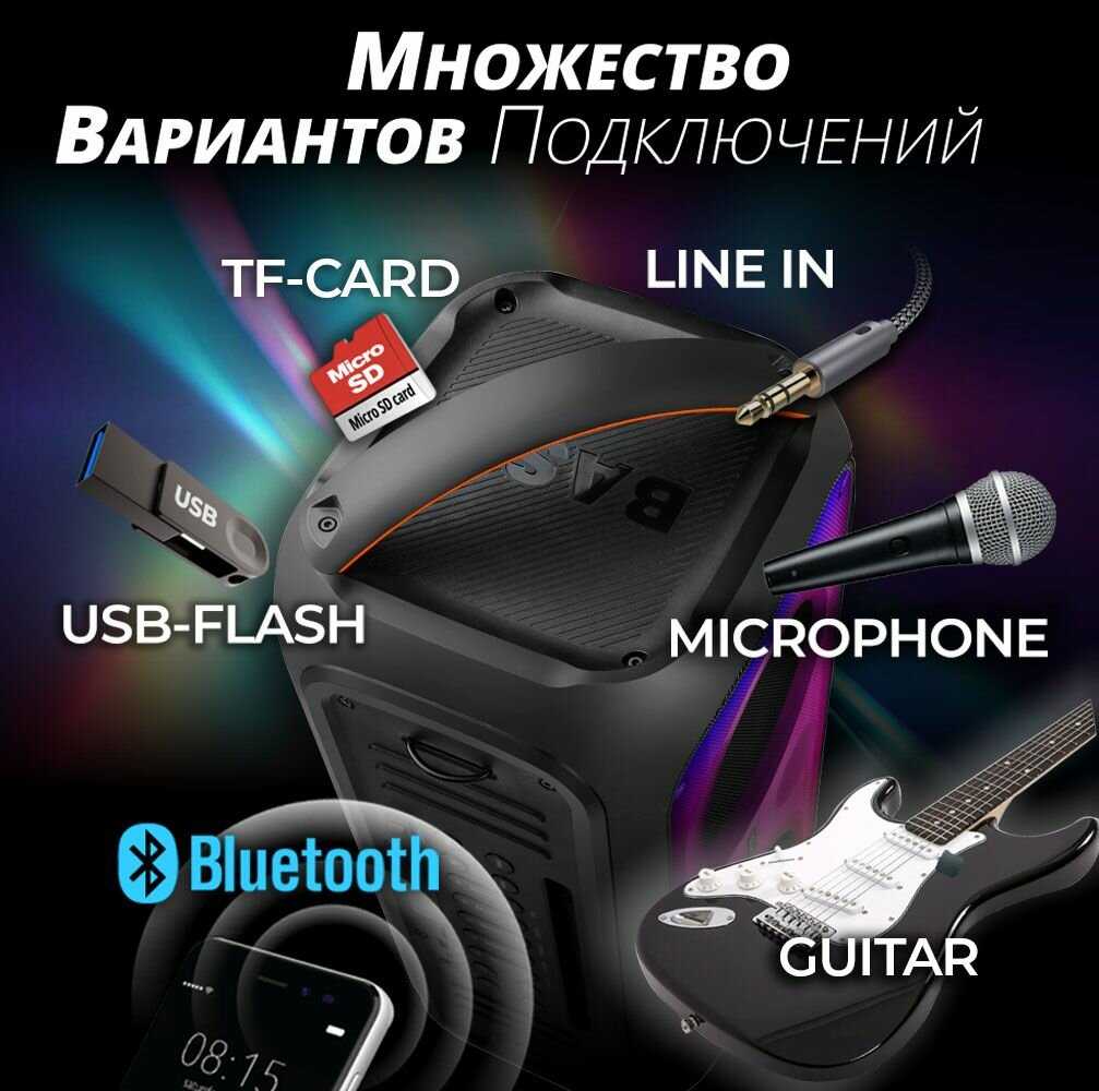 Ginzzu GM-214 с Bluetooth, 50Вт, LED-дисплей, TWS, FM-радио, пульт ДУ, эквалайзер, подсветка
