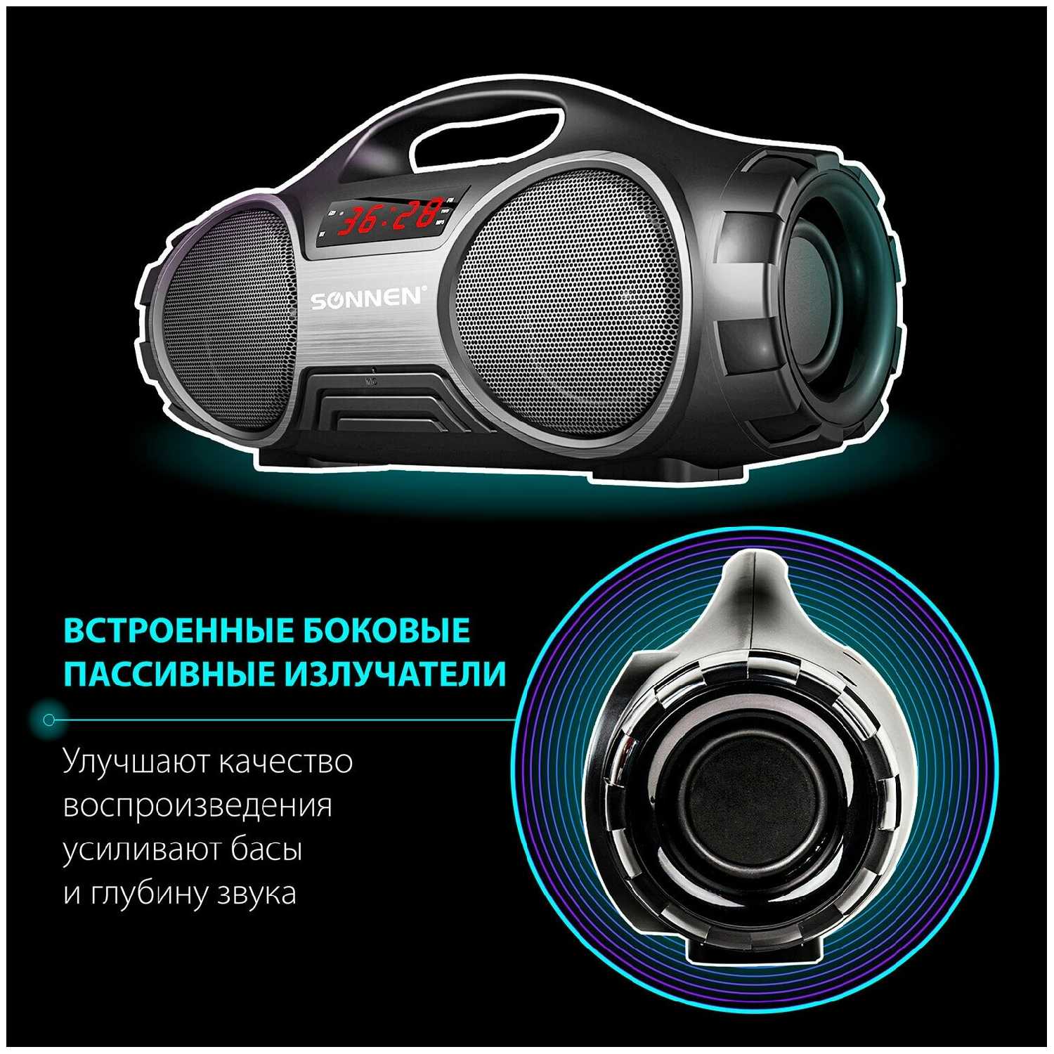 SONNEN B306, комплект 5 шт, 12 Вт, Bluetooth, FM-тюнер, microSD, MP3-плеер, черная, 513479