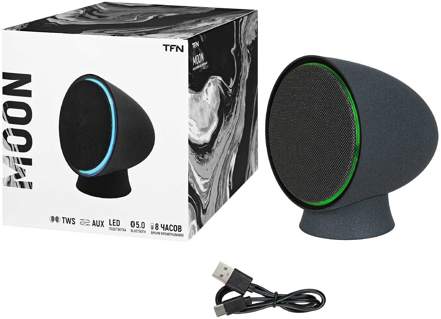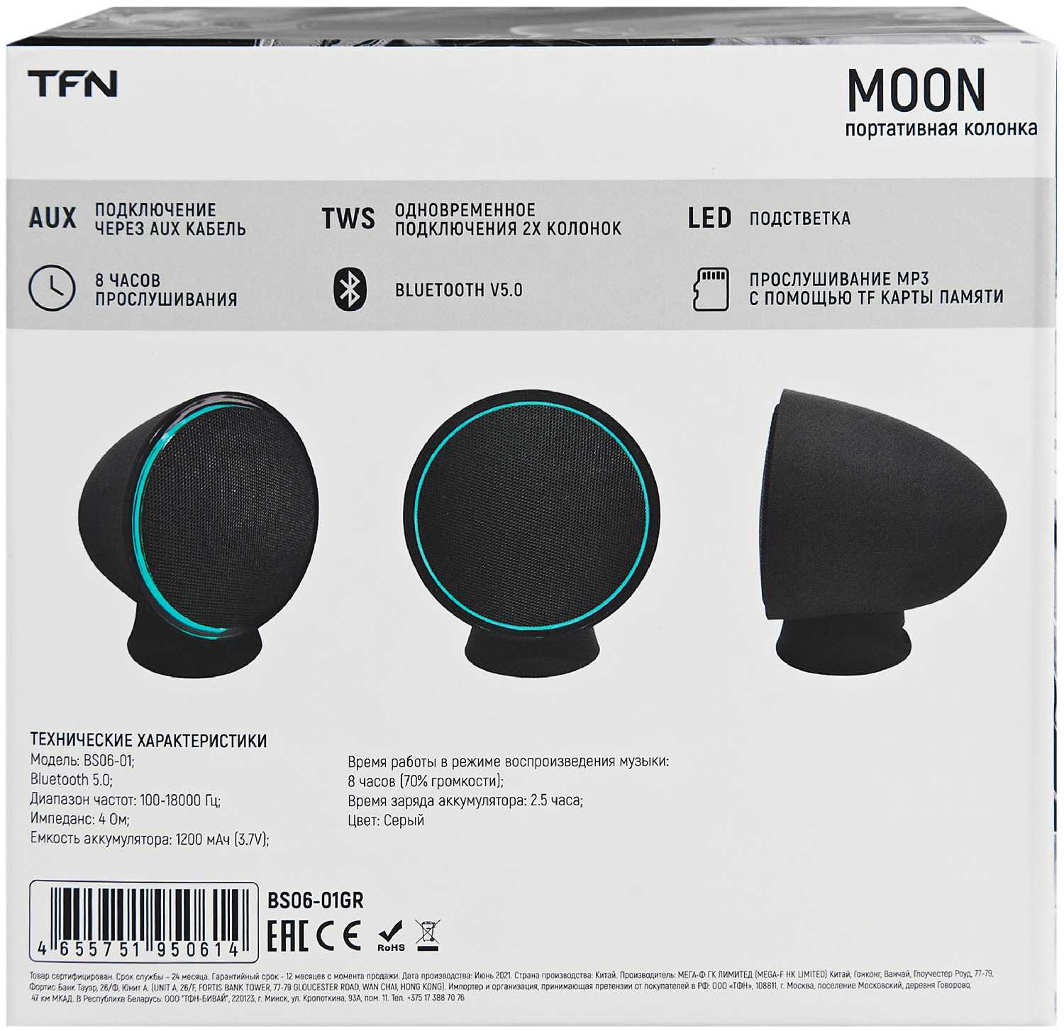 TFN Moon, 5Вт, BT 5.0, microSD, Type-C, AUX, подсветка, 1200мАч, серая