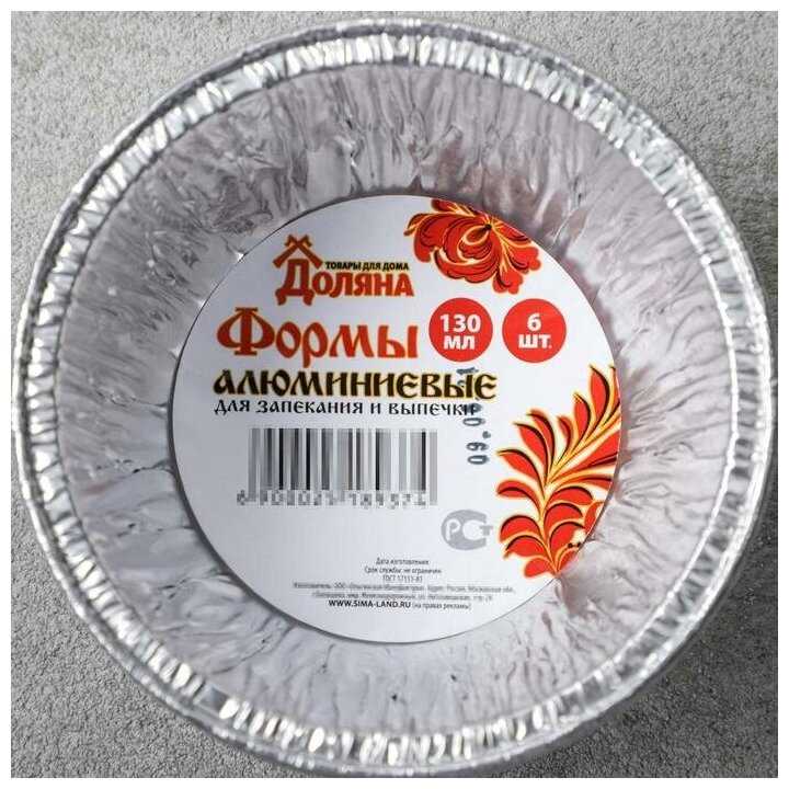 6.2/10 балловДоляна Формы для выпечки из фольги, набор для запекания, посуда для приготовления "Маффин" 130 мл, 6 шт, цвет серебристый