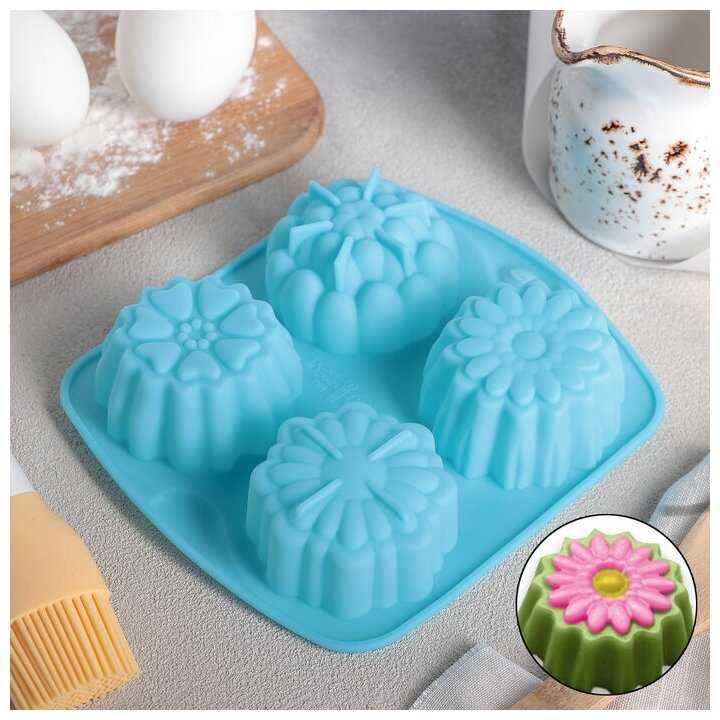 6.3/10 балловДоляна Форма для выпечки 4 ячейки Цветы. Цветочная долина 14х14х3,5 см (d=6 см) цвет микс