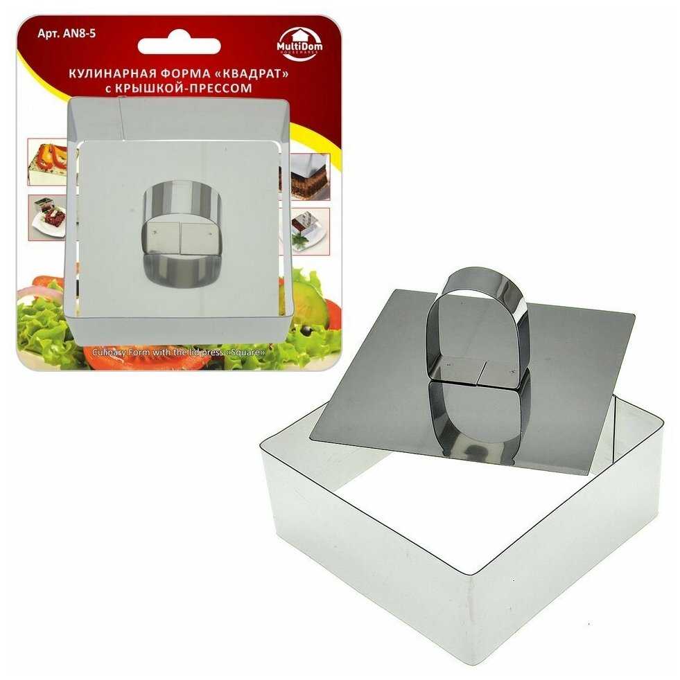 4.3/10 баллов 4.3/10 балловМультидом Форма МультиДом кулинарная "Квадрат" с прессом AN8-5 10*10*4см972 место из 5384 Характеристики:- материал: сталь
