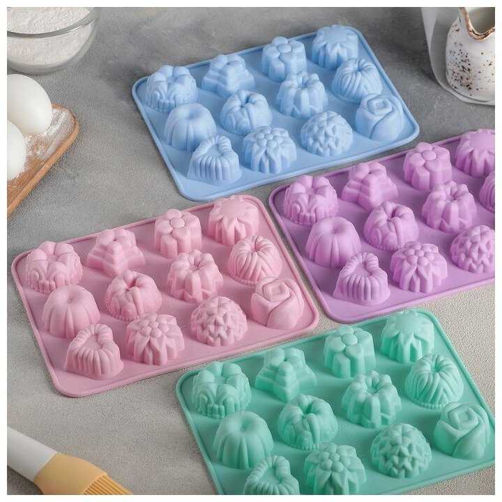 6.6/10 балловДоляна Форма для выпечки 12 ячеек Немецкий кекс. Цветочное ассорти 16х21х2,5 см (d=4,2) цвет микс