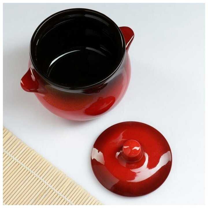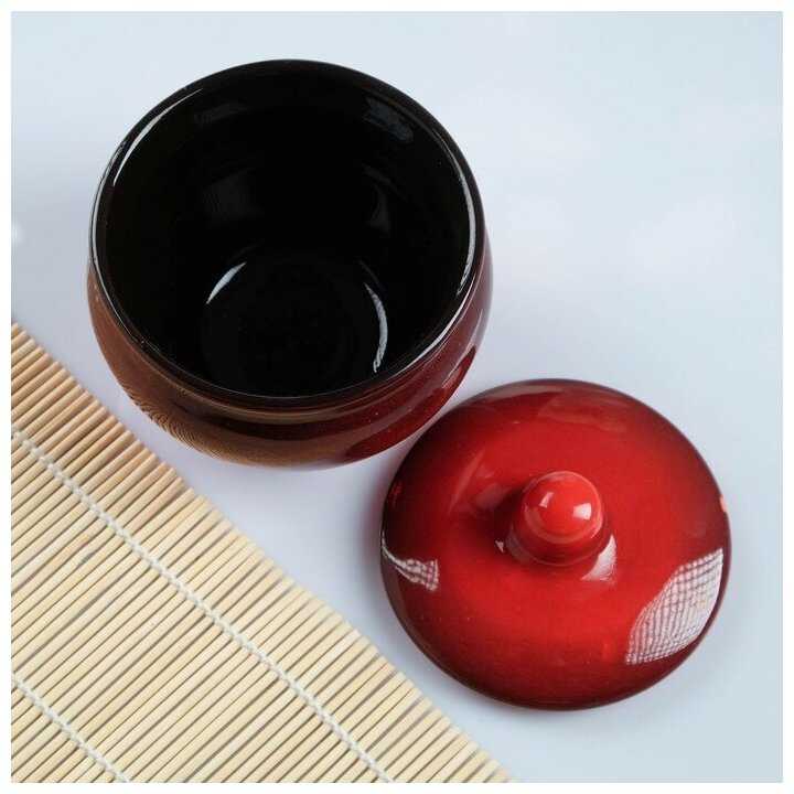 Борисовская керамика Горшок для запекания керамический, с крышкой "Мечта хозяйки", объем 0,35л, цвет красный