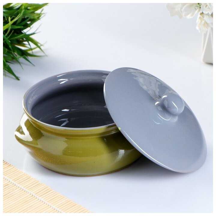 Борисовская керамика Горшок духовой для запекания, форма для выпечки, посуда для жаркого с крышкой, 0,65л, мрамор