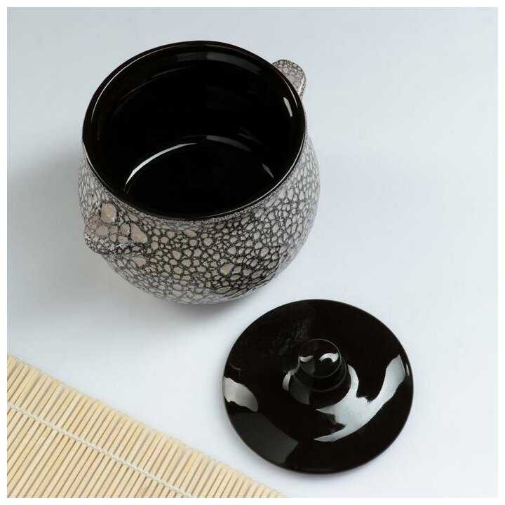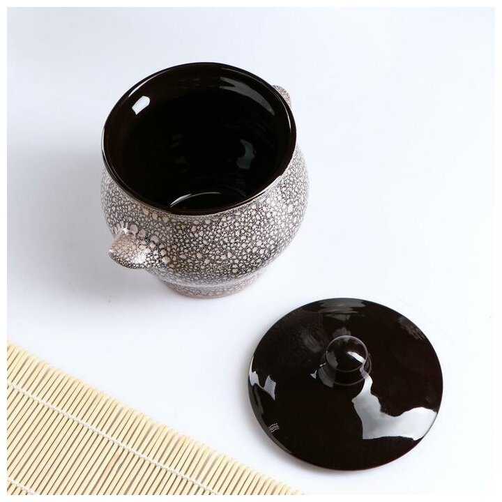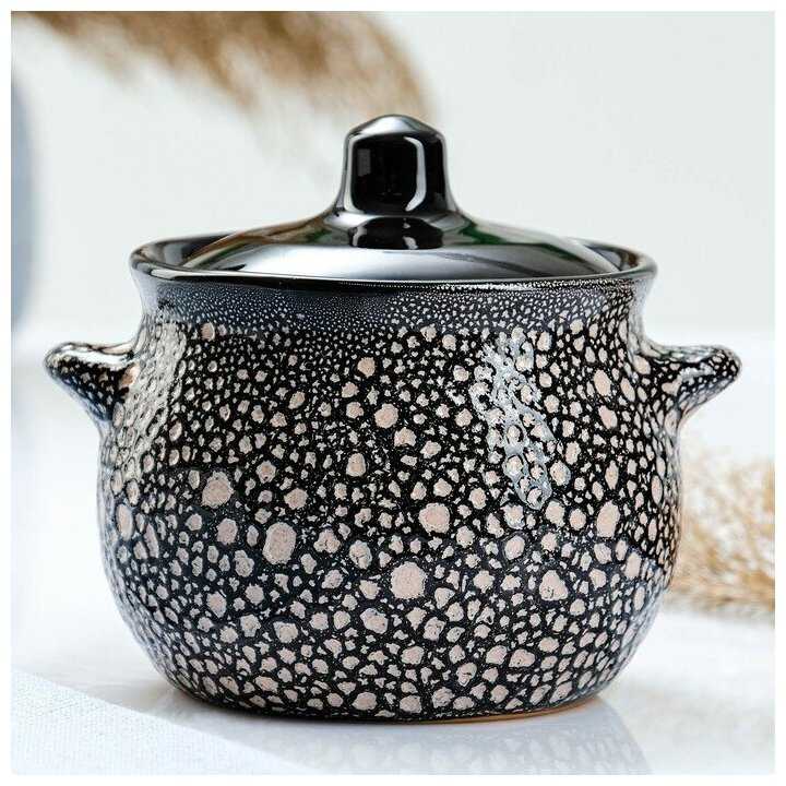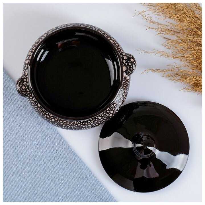 Борисовская керамика Горшок керамический для запекания, для жаркого с крышкой, с ручками "Пиканто" мрамор, объем 0,65 л