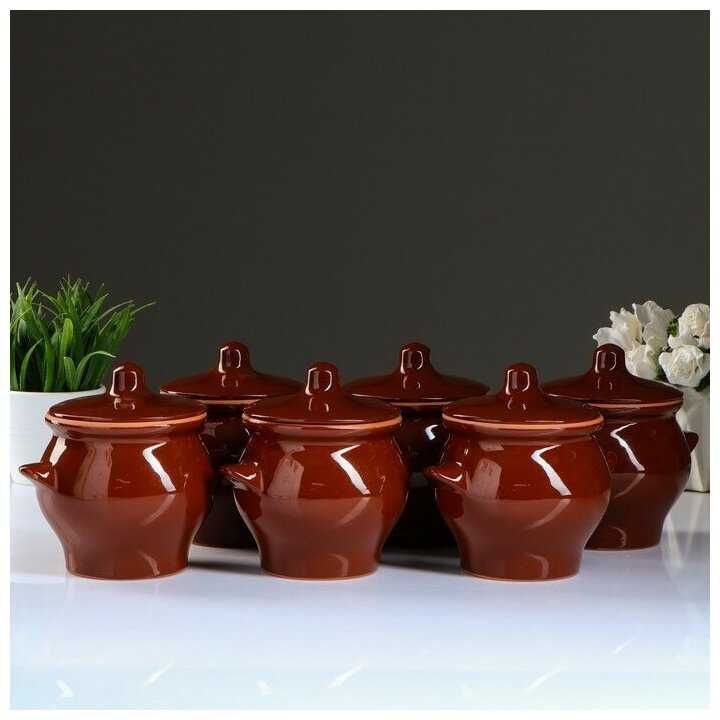 Борисовская керамика Набор горшков керамических для запекания, для жаркого, с крышкой, объем 0,65 л