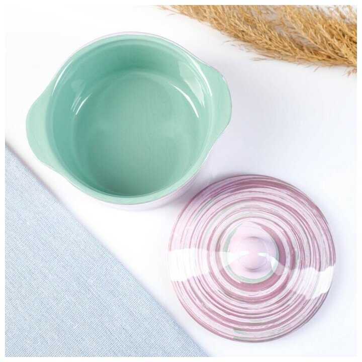 Борисовская керамика Горшок духовой для запекания, форма для выпечки, посуда для жаркого с крышкой "Пиканто радуга" 0,65л, микс