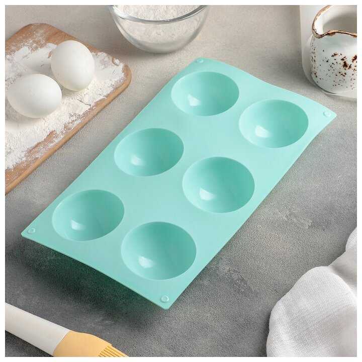 Доляна Форма для выпечки 6 ячеек Фигуры. Полусфера 27х18х3,5 см (7х7х3,5 см) цвет микс