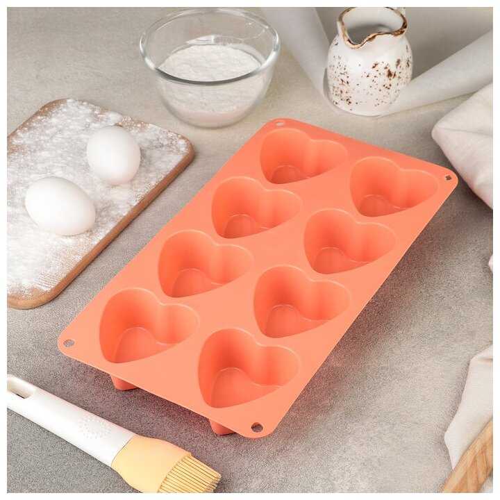 Доляна Форма для выпечки 8 ячеек Сердце 31х16х4 см (7х6,8 см) цвет микс