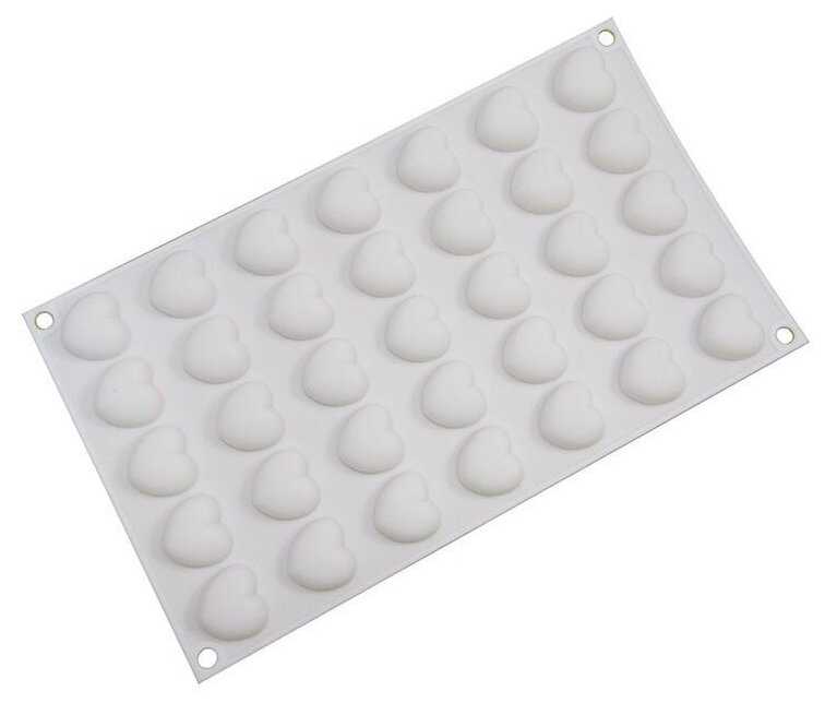 Доляна «Сердца», 29,7×17,3×1,5 см, 35 ячеек, 2,7×2,5 см, силикон, цвет белый