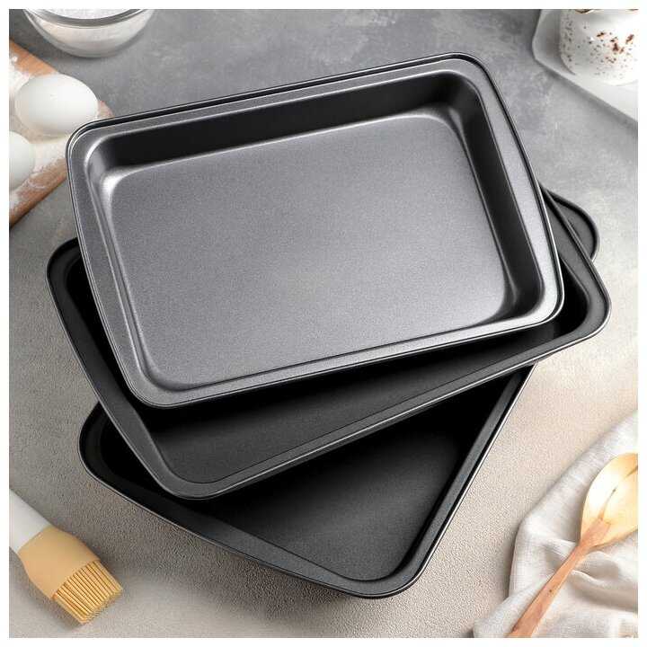 Доляна «Жаклин», 3 предмета: 34×24 см, 31,5×22 см, 30×20 см, антипригарное покрытие, цвет чёрный