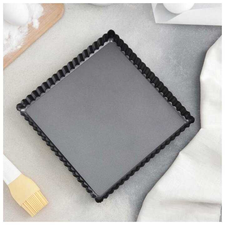 Доляна «Жаклин. Рифлёный квадрат», 21×2,5 см, съёмное дно, антипригарное покрытие, цвет чёрный