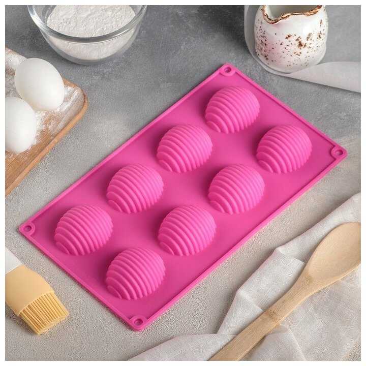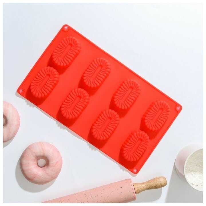 Доляна Форма силиконовая для выпечки, запекания десертов, посуда для муссовых пирожных, 8 ячеек "Зорро", 28×16×2 см, цвет микс