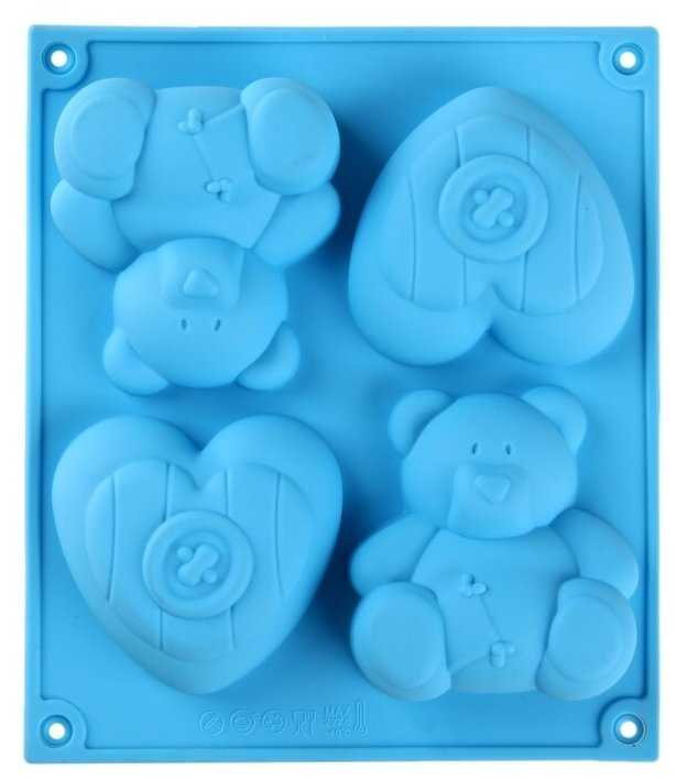Доляна Форма для выпечки 4 ячейки Животные. Мишка и сердце 17х15х3 см (7х6,5/6,5х6,2 см) цвет микс
