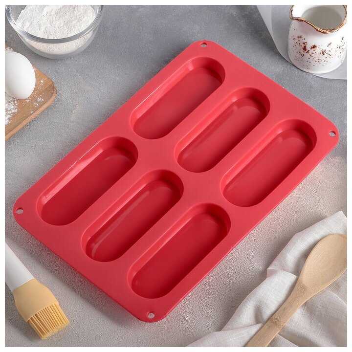Доляна Форма силиконовая для выпечки, запекания десертов, эклеров, посуда для духовки, 8 ячеек "Адель" 28×16×2 см, цвет микс