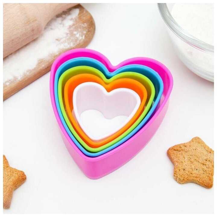 Доляна Набор форм для печенья 5 шт Сердце, цвет микс
