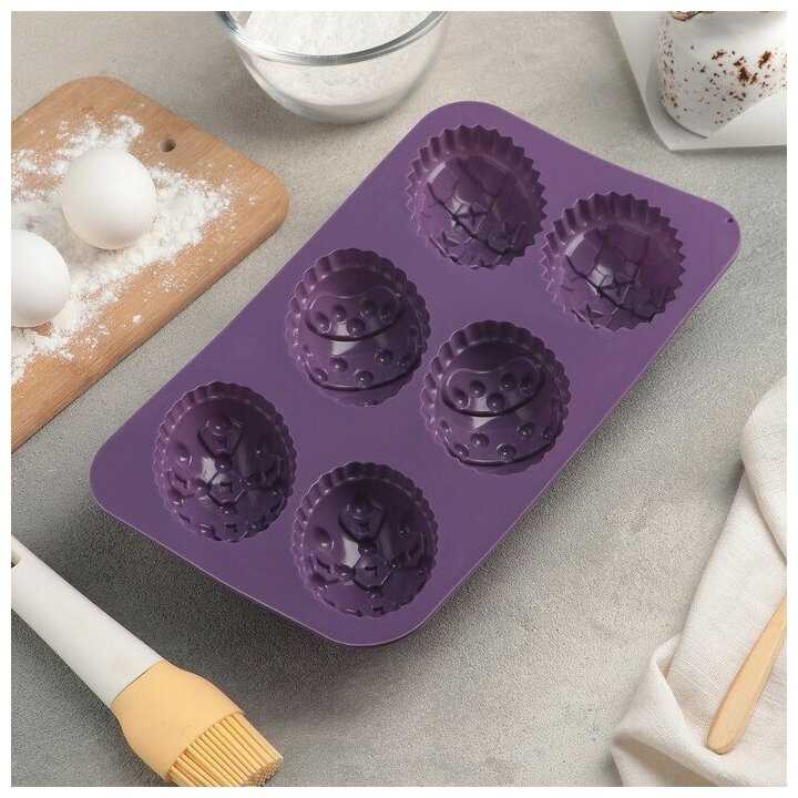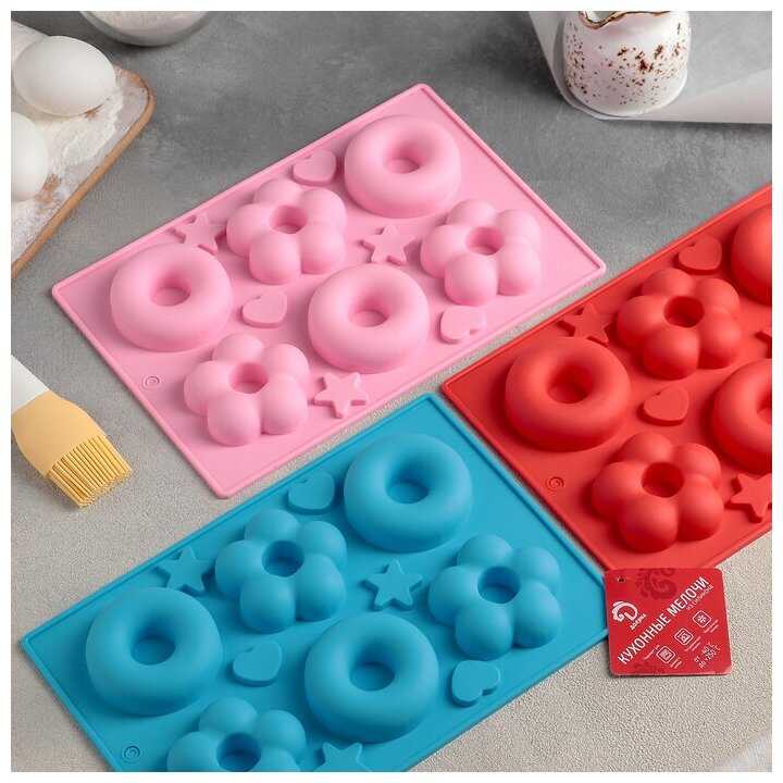 Доляна Форма для выпечки 6 ячеек Сладости. Пончик и Ромашка 25,5х17,5х1,5 см цвет микс