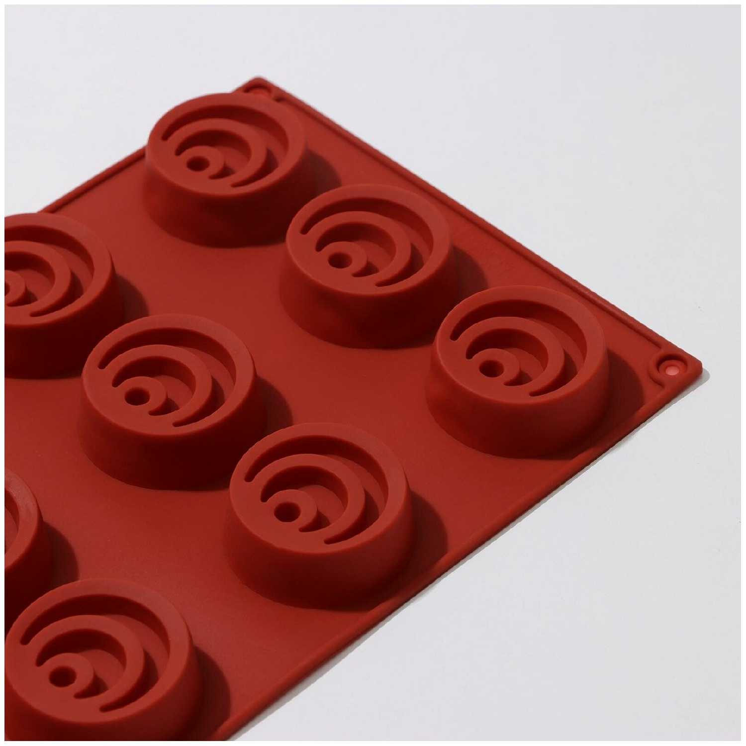 Доляна Форма силиконовая для выпечки, запекания десертов, посуда для муссовых пирожных, 12 ячеек "Кристалл", 29×17×2,2 см, d=4,5 см, цвет коричневый