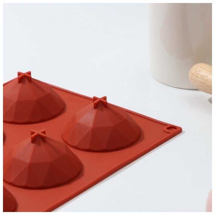 Доляна Форма силиконовая для выпечки, запекания десертов, посуда для муссовых пирожных, 8 ячеек "Бриллиант", 29×17×2,2 см, d=5,8 см, цвет коричневый