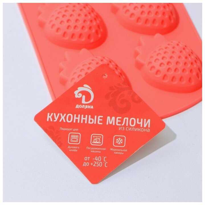 Доляна Форма для выпечки 6 ячеек 19х11х1,5 см Клубника, цвет микс