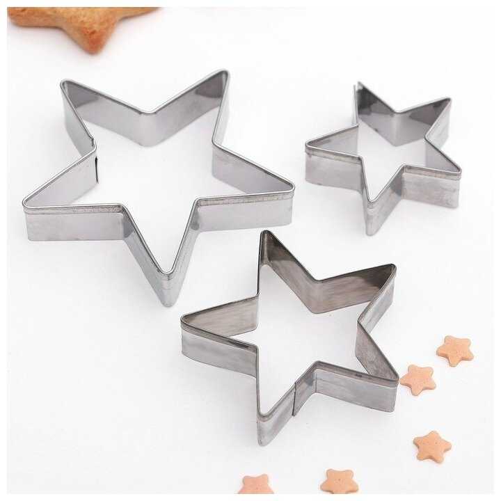 Доляна Набор форм для вырезания печенья 3 шт Остроконечная звезда 7х6,7х1,5 см
