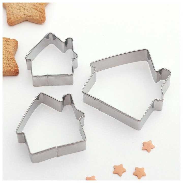 Доляна Набор форм для вырезания печенья 3 шт Дом 6x5,5 см