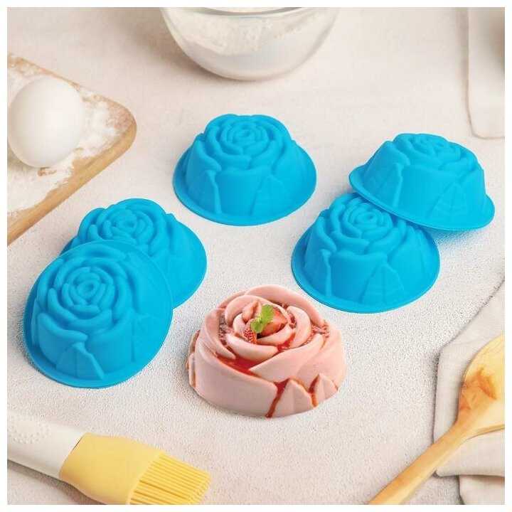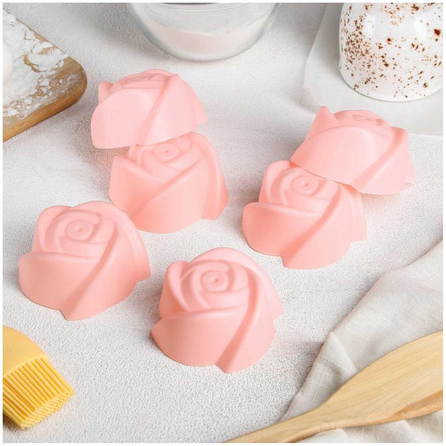 Доляна Набор силиконовых форм для выпечки "Розочки" 7х7х3 (см), 6 шт.
