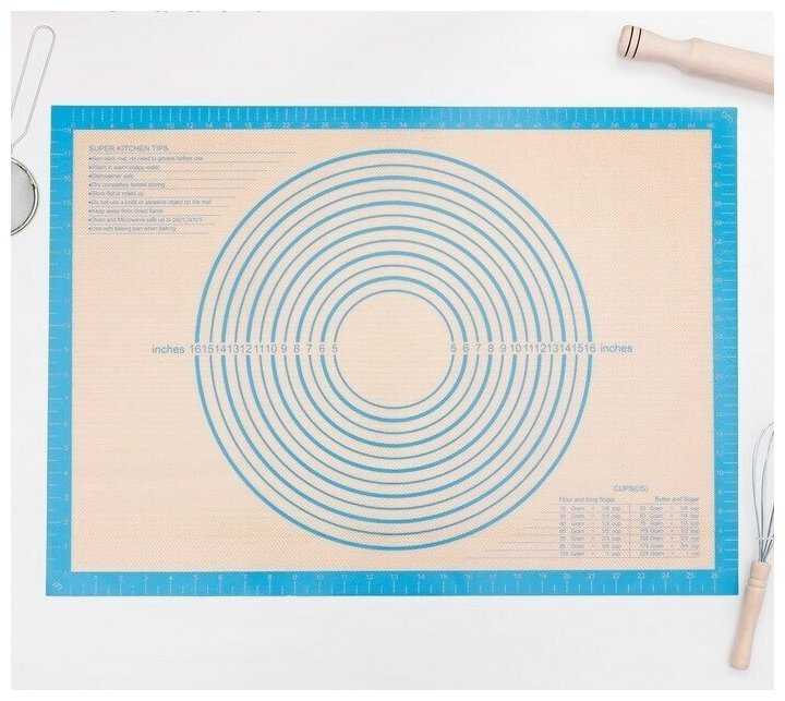 Доляна Армированный силиконовый коврик для раскатки теста и выпечки 59х38.5 см