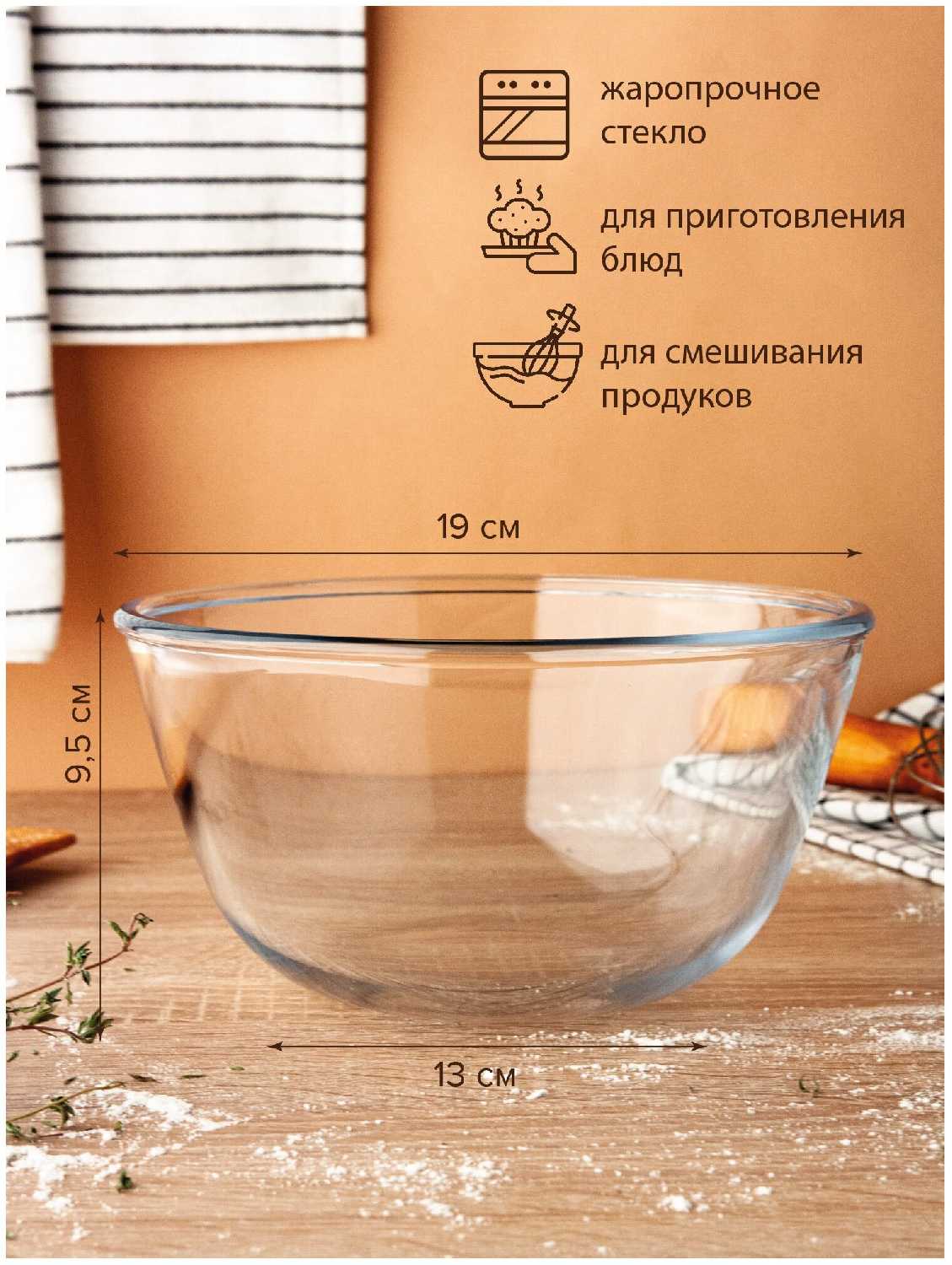 Good Sale Миска для смешивания продуктов прозрачная, 1.5 л/салатник жаропрочный/форма для запекания