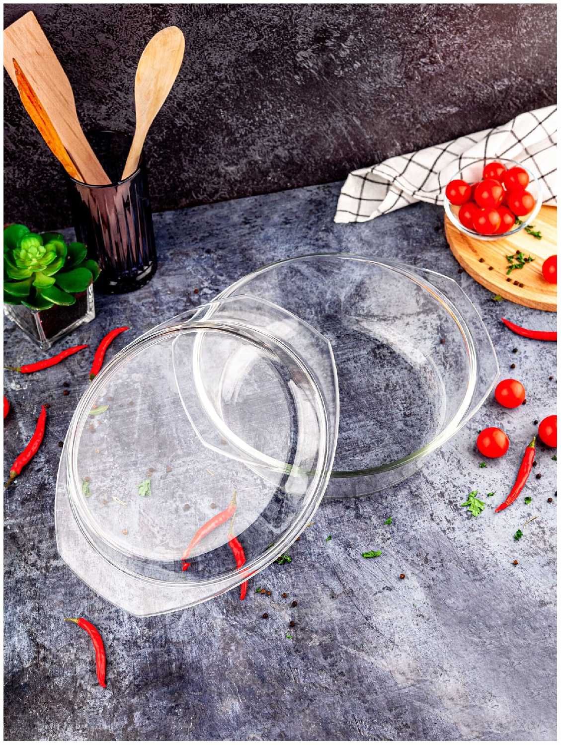 Good Sale Кастрюля для запекания круглая из термостойкого стекла с крышкой, 2,5 литра, стеклянная форма для выпечки, для духовки