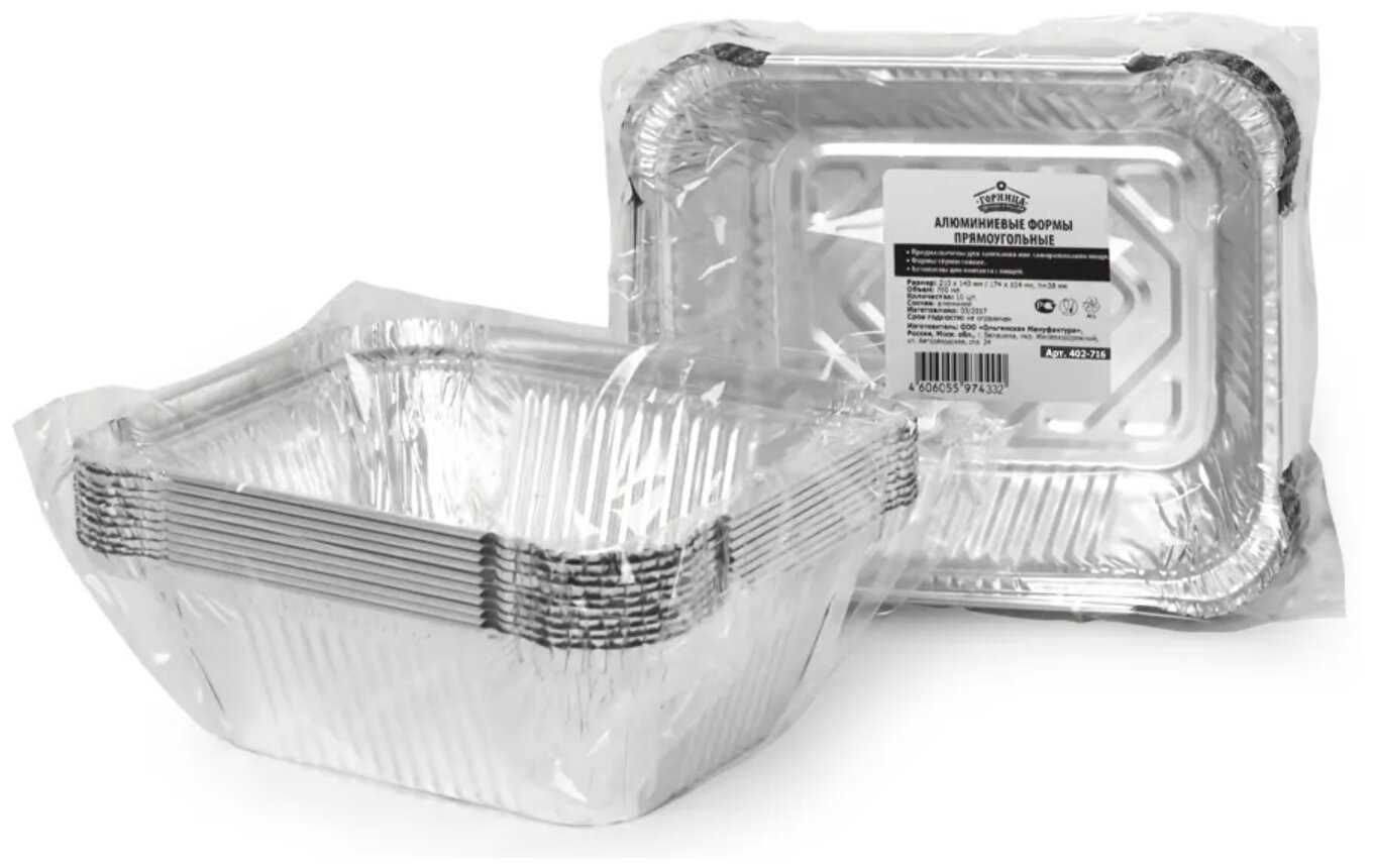 Горница Форма алюминиевая прямоугольная, 780мл, 210х148х38мм (402-707) 50шт/уп