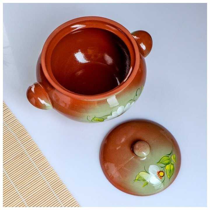 7.6/10 баллов 7.6/10 балловКунгурская керамика Жаровня, горшок духовой для запекания, форма для выпечки, посуда глиняная для жаркого с крышкой "Ромашка на зелёном" 2л2392 место из 5384 Характеристики:- материал: керамика
