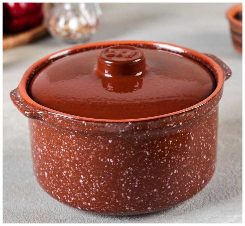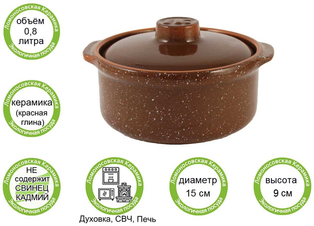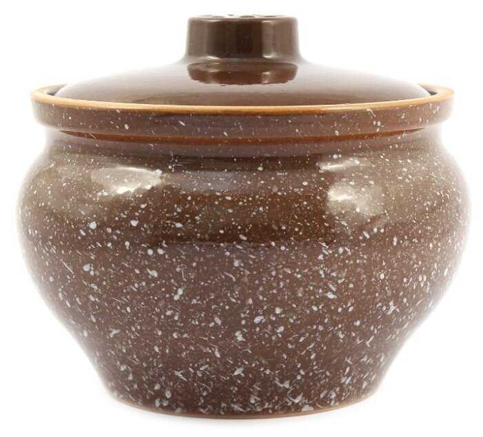 Ломоносовская Керамика Горшочек традиционный 1,0л (мрамор коричневый)