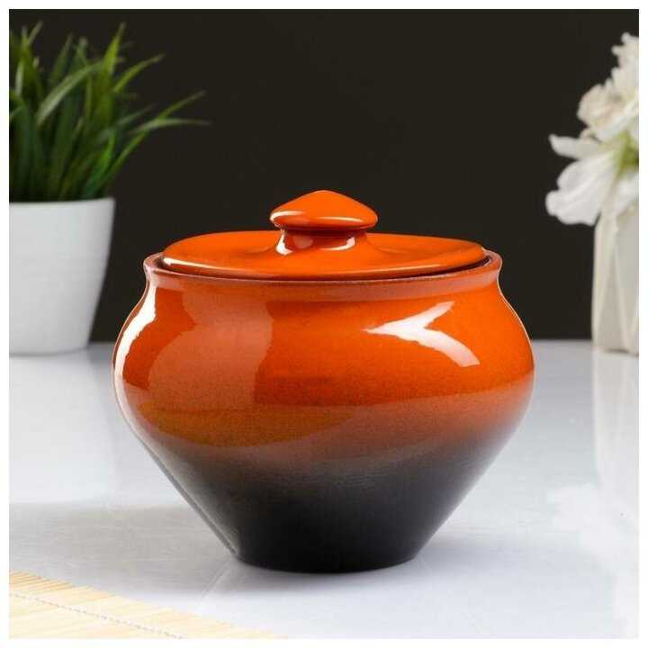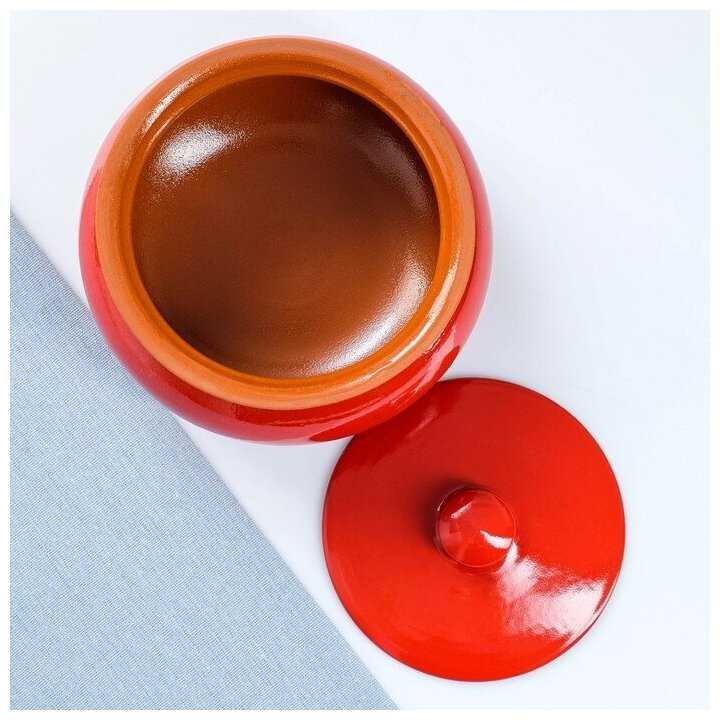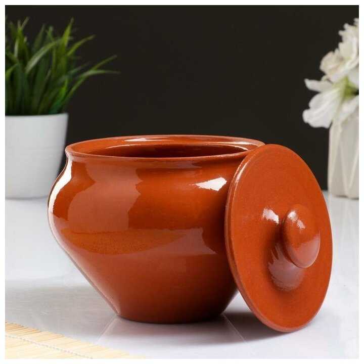 Вятская керамика Горшок духовой для запекания, форма для выпечки, посуда для жаркого с крышкой "Классика" 0,9л