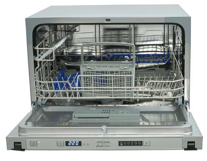 Характеристики:- компактная настольная посудомоечная машина отдельно стоящая сушка горячим воздухом расход воды 13 л защита от детей дисплей уровень шума при работе 58 дБ