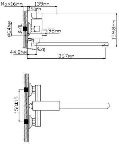 | @Комплектация : | корпус смесителя, излив на гайке 3/4", два эксцентрика 1/2"х3/4", два конусных хромированных отражателя 3/4", две резиновые прокладки 3/4", душевой шланг в хромированной металлической оплётке 1/2"х1/2" длиной 150 см, душевая пластиковая лейка один режим струи, держатель лейки настенный, паспорт изделия |