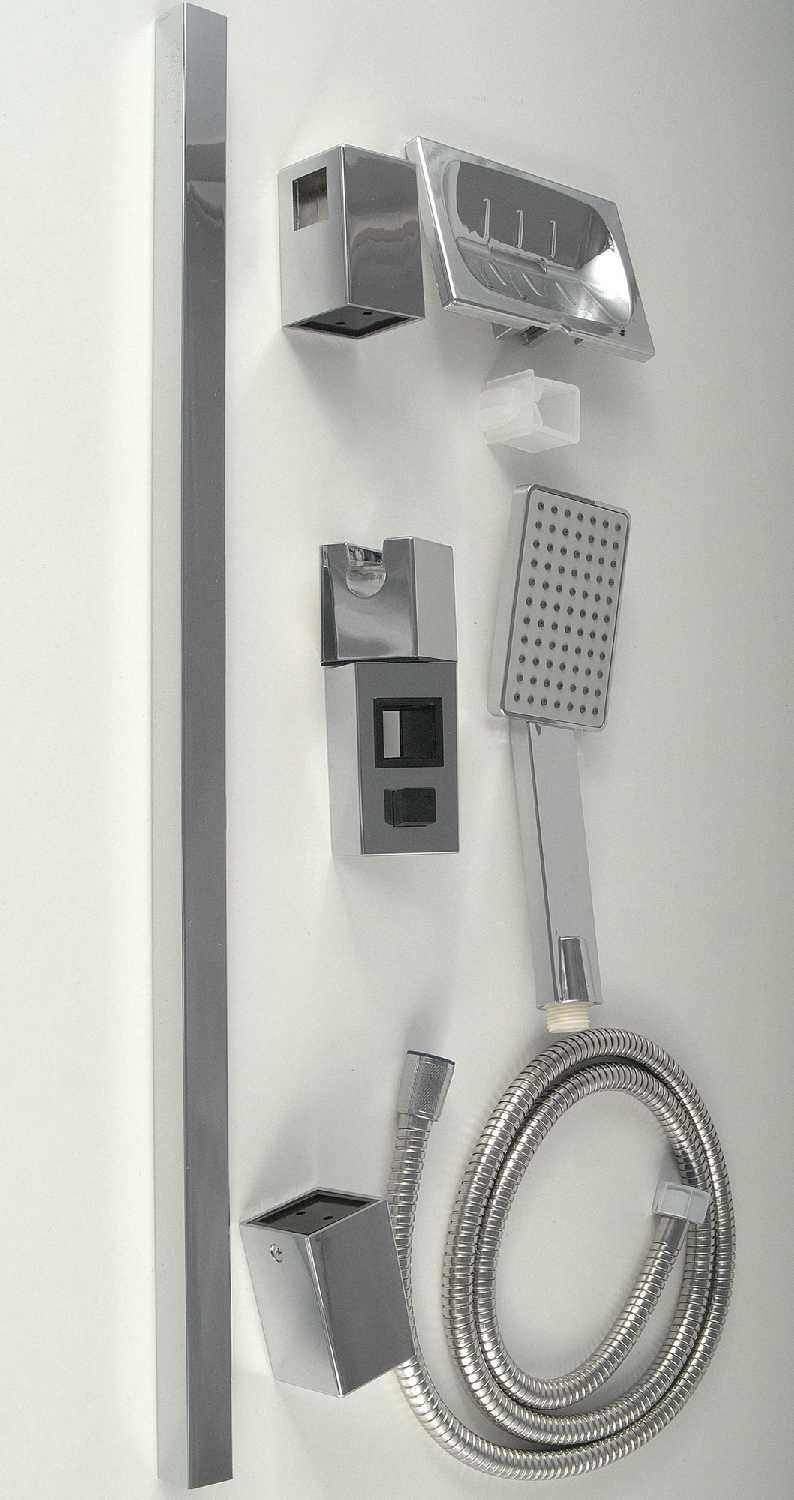 Комплектация : | лейка, шланг, мыльница, держатель лейки, душевая стойка |